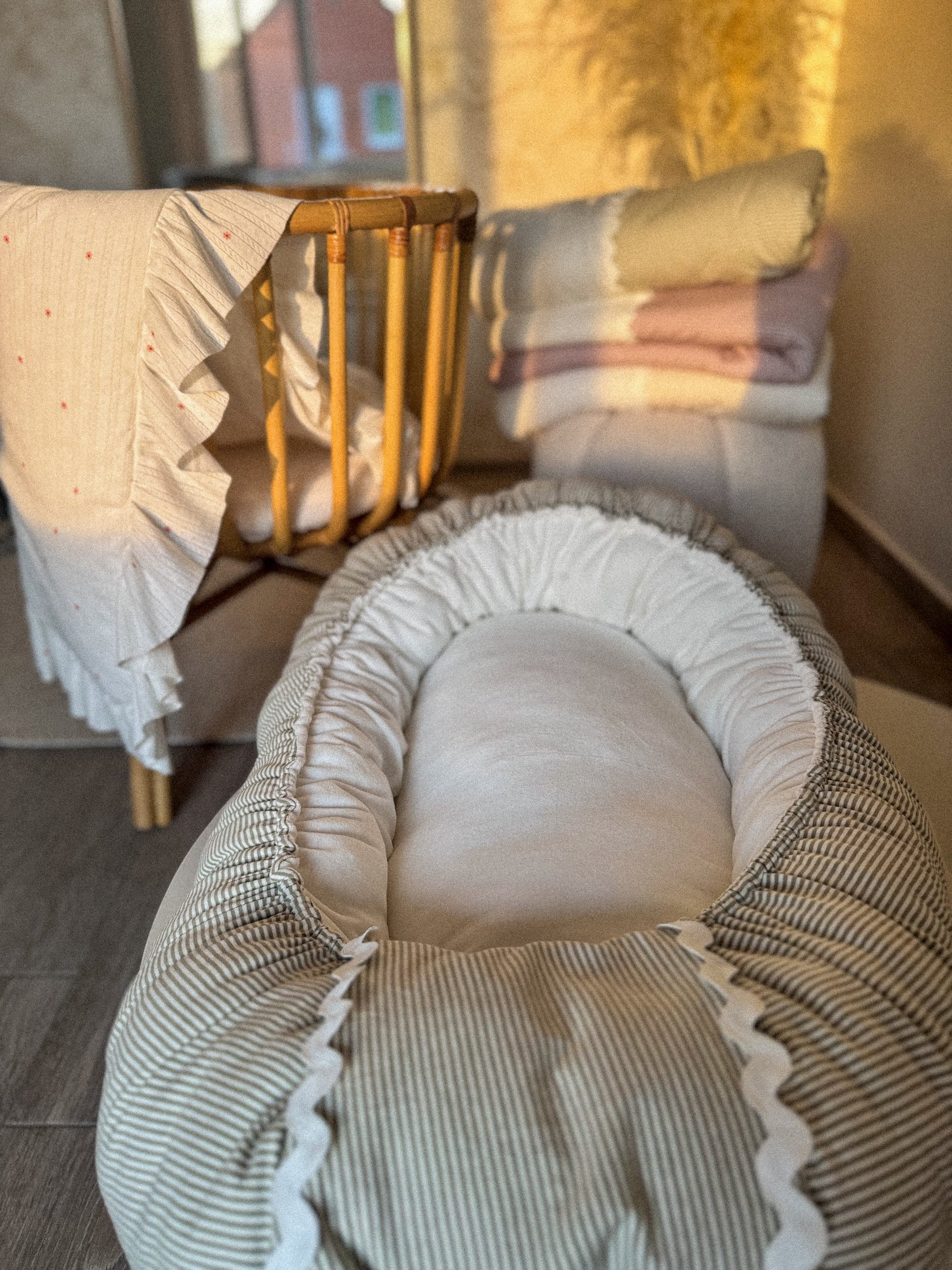 Les matériaux sont sélectionnés avec le plus grand soin, pour garantir à votre bébé un environnement à la fois sain, douillet et sécurisé. Ce cocon n’est pas un simple accessoire, c’est un véritable espace de transition entre les bras des parents et le lit, conçu pour apaiser, rassurer et accompagner bébé dans ses premières découvertes du monde.