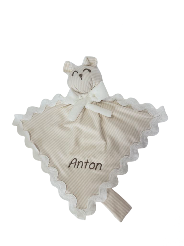 Offrez à votre bébé un compagnon tout en douceur avec notre doudou festonné personnalisé. Confectionné dans un jersey de coton rayée, ce doudou est à la fois doux, léger et apaisant, parfait pour les câlins du quotidien.